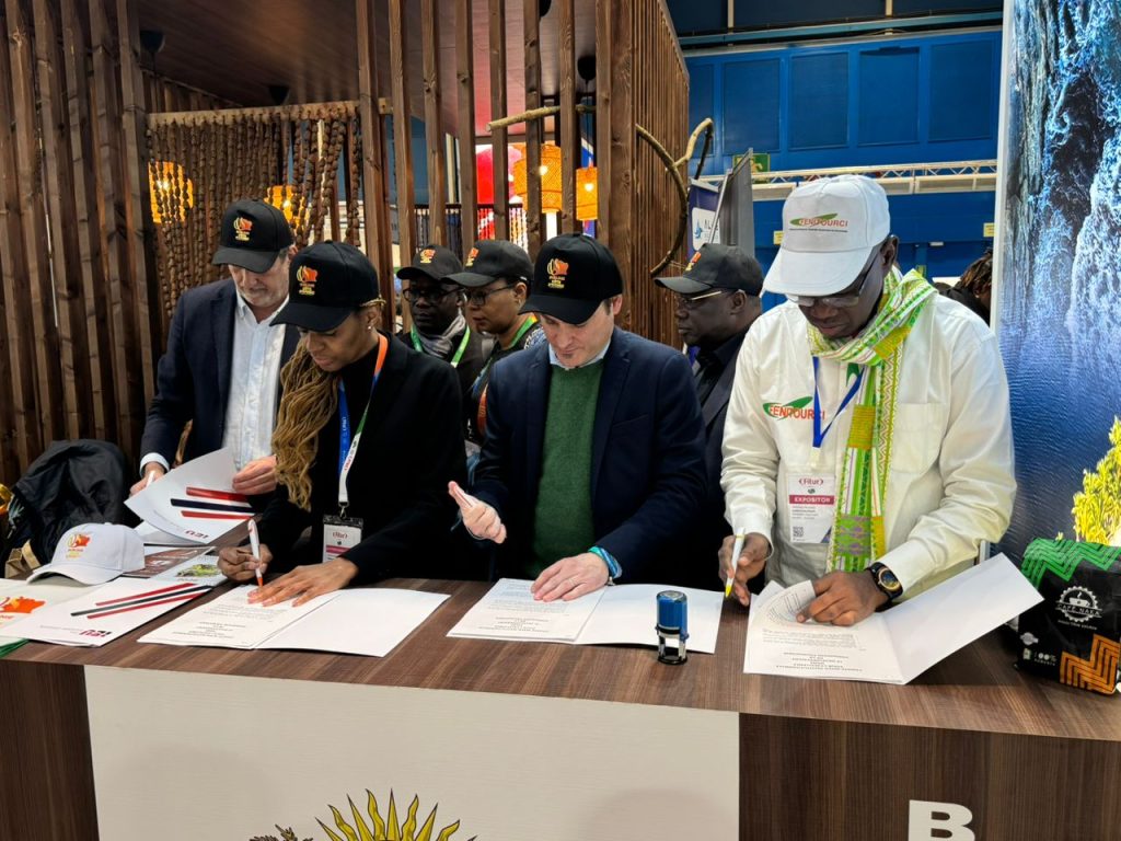 La Fédération Nationale de l’Industrie Touristique de Côte d’Ivoire (FENITOURCI) a signé, le 25 janvier 2024 à Madrid, un partenariat stratégique avec plusieurs acteurs majeurs du secteur touristique dans le but de renforcer les compétences et promouvoir un tourisme durable. Cette collaboration implique des institutions de renom telles que le Ministère du Tourisme et des Loisirs de la République de Côte d’Ivoire, l’International European University (IEU), la Fondation Mahreign J, l’Asociación Española de Directores de Hotel (AEDH) et son Centre de Haut Rendement Touristique (CART). Ensemble, ces entités s’engagent à promouvoir l’excellence dans la formation touristique en se concentrant sur des domaines clés tels que l’écotourisme, le tourisme de santé, ainsi que la diversité culturelle et gastronomique. L’objectif principal de cette initiative est de développer des programmes de formation innovants axés sur l’éthique et la durabilité, en intégrant l’innovation, l’élaboration de normes de gestion éthiques et le renforcement des compétences des professionnels du secteur à travers des formations multidisciplinaires.